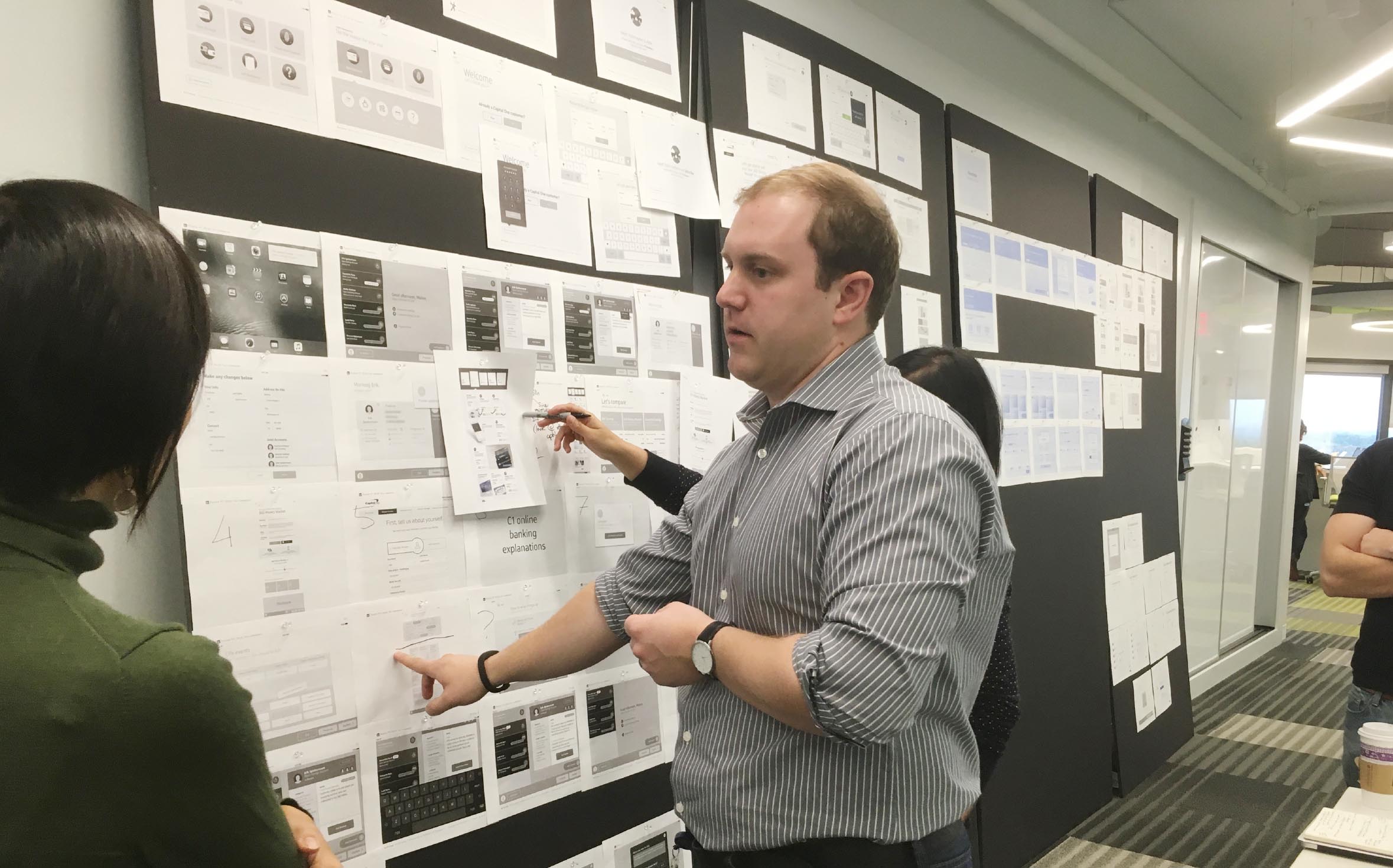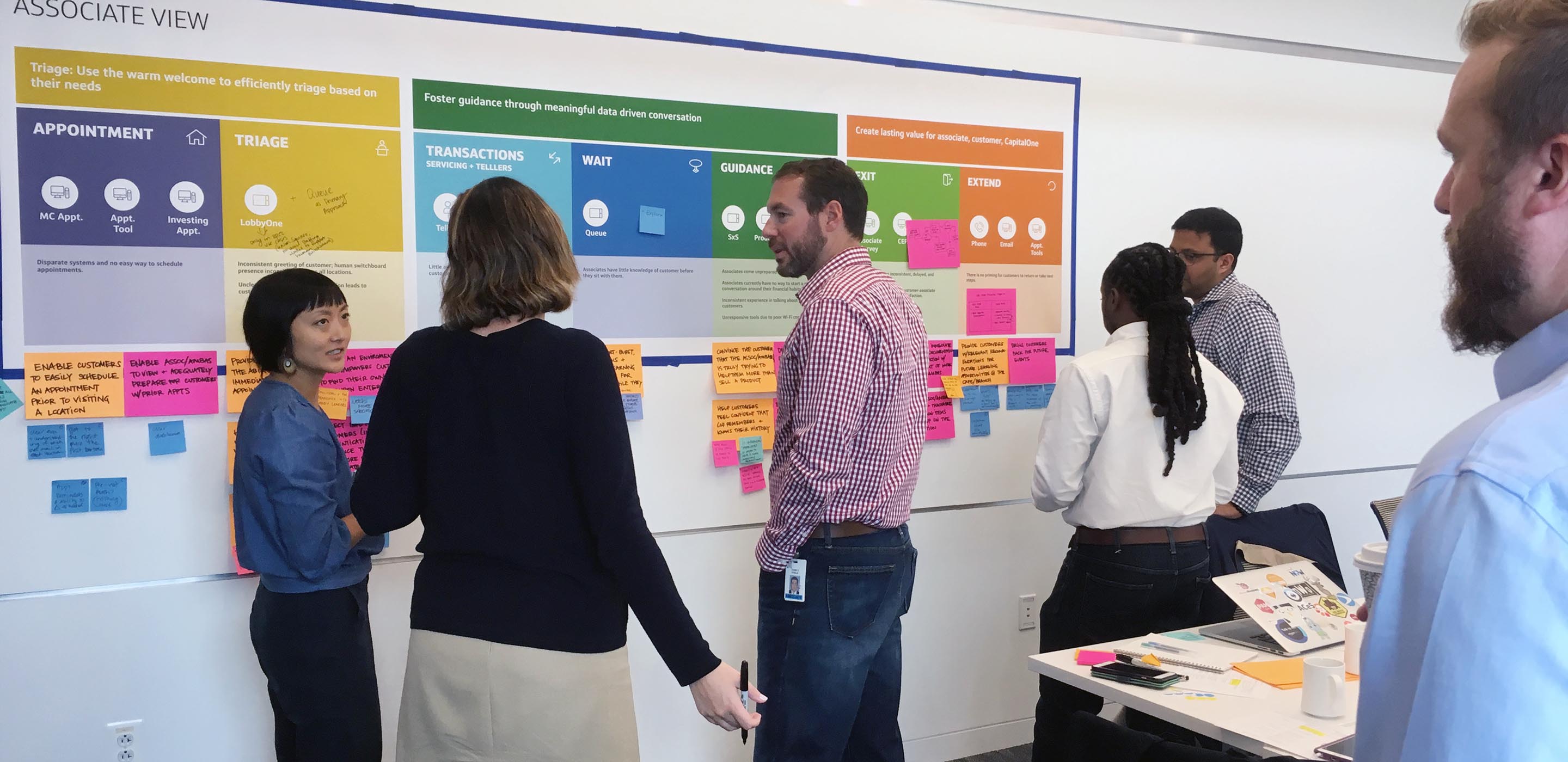 At the onset of the project, I partnered with the Capital One Design Strategy team to conduct research. At this stage, I wrote research scripts and conducted interviews with Associates at both Café and Branch locations throughout the country to get a better understanding of how the experience differed in these two locations. This research phase culminated in the shareout of an experience map, which was instrumental in gaining stakeholder buy-in.